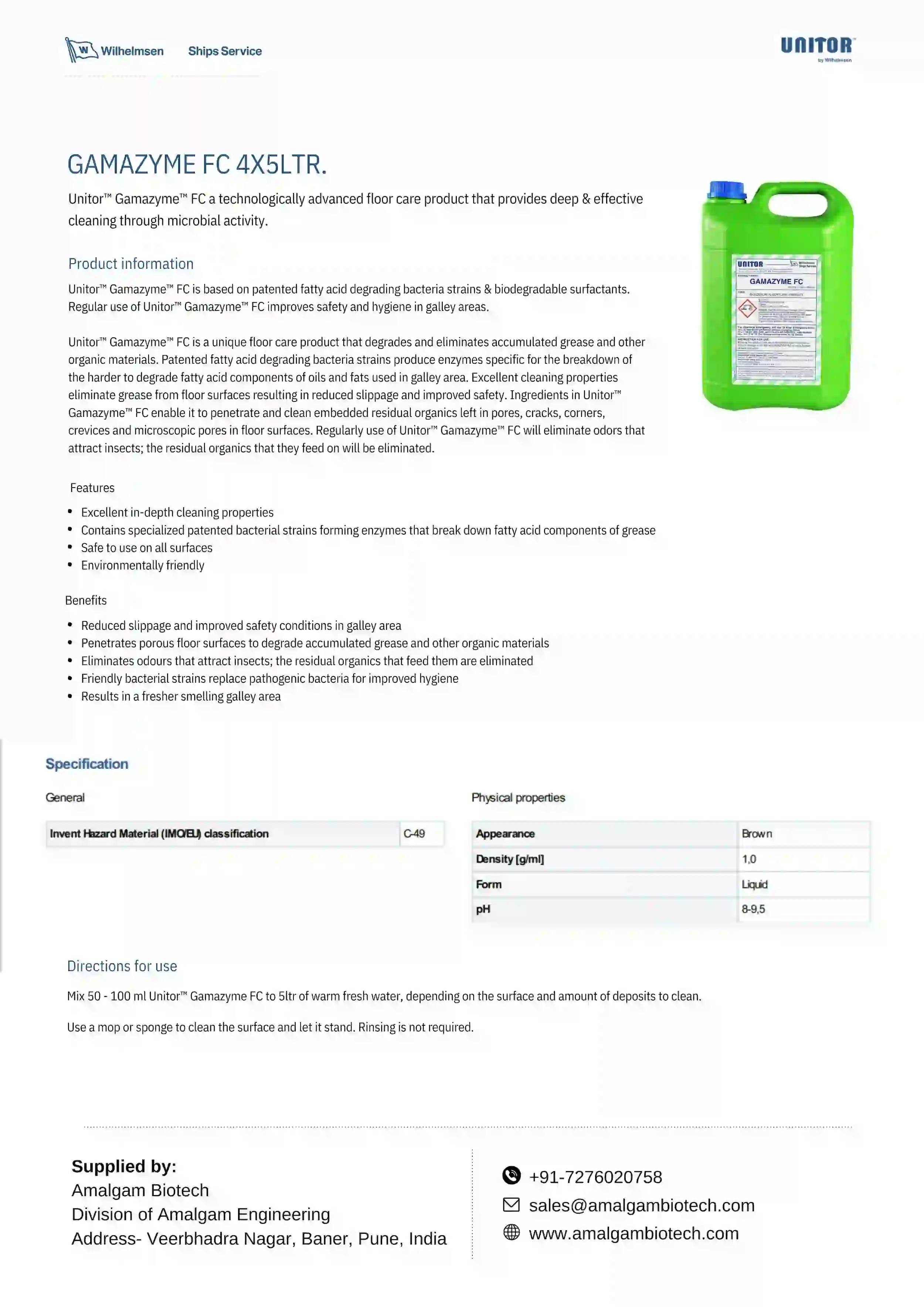Unitor™ Gamazyme™ FC is an advanced floor cleaner that uses microbes for deep cleaning.